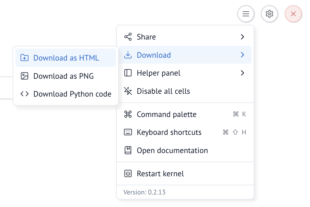 When you export from the command line, marimo runs your notebook to produce its visual outputs before saving as HTML.